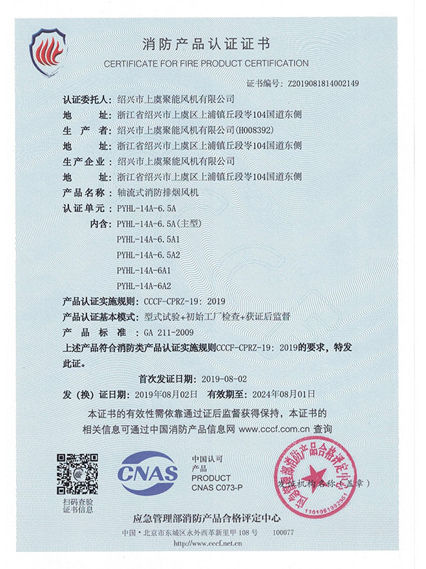 資質(zhì)證書 > 消防產(chǎn)品認(rèn)證證書