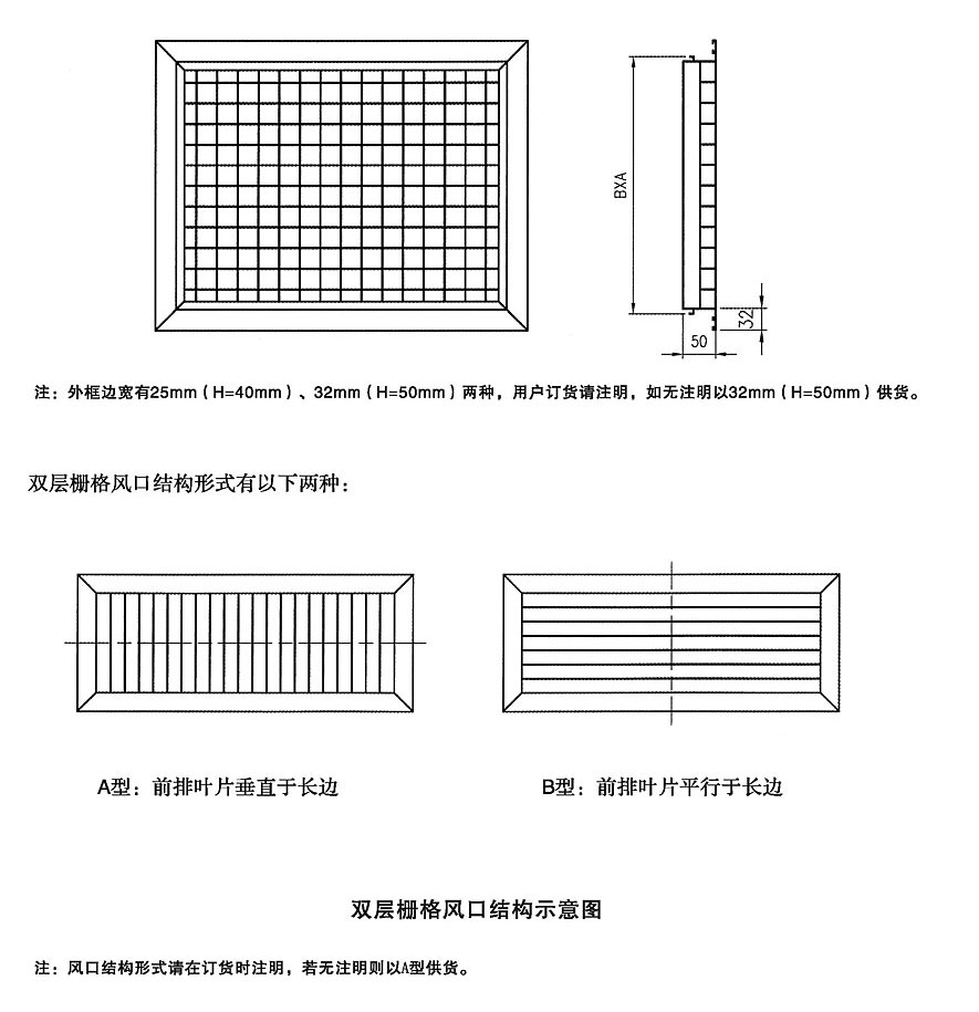 雙層?xùn)鸥耧L(fēng)口屬雙層調(diào)節(jié)百葉式送風(fēng)口,本系列風(fēng)口可直接與風(fēng)機(jī)盤管配套使用,也用于空調(diào)系統(tǒng)的末端,該風(fēng)口的兩層葉片交叉組合,葉片角度可在0°~180°范圍內(nèi)任意調(diào)節(jié),將葉片角度調(diào)節(jié)成不同角度,可以得到不同的送風(fēng)距離和不同的擴(kuò)散角。風(fēng)口后部可以另配調(diào)節(jié)器,將風(fēng)量及風(fēng)速控制在適當(dāng)范圍內(nèi)。鋁合金風(fēng)口表面經(jīng)陽極氧化處理,也可根據(jù)用戶要求進(jìn)行靜電噴塑。