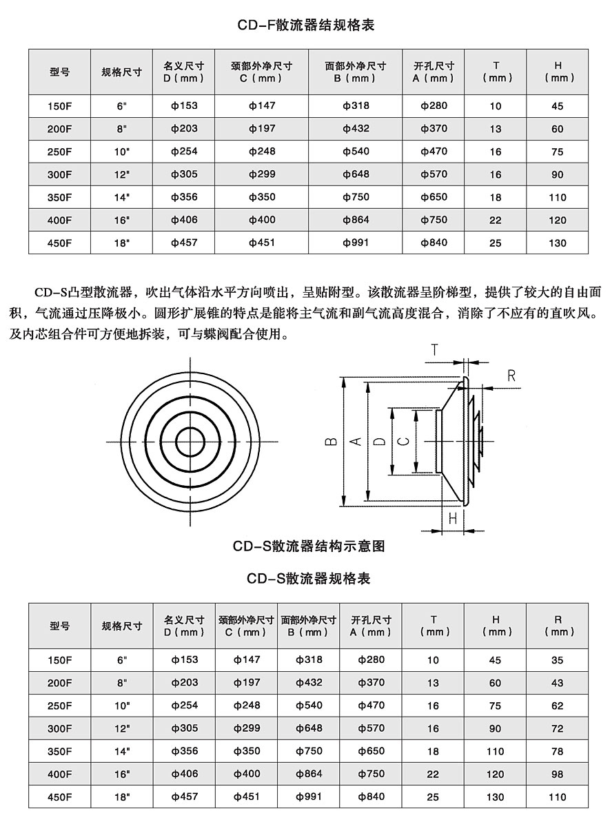 方形散流器為七六屬貼附(平送)型,適用于播音室.醫(yī)院,劇場(chǎng),教室,音樂廳,圖書館,游藝廳,劇場(chǎng)休息廳,一般辦公室,商店,旅館,飯店及體育場(chǎng)合,為了使人們?cè)诟鞣N環(huán)境里避免噪音的干擾而引起的不適感,除了按性能表確定頸部風(fēng)速外,還需考慮安裝高度及安裝場(chǎng)合。