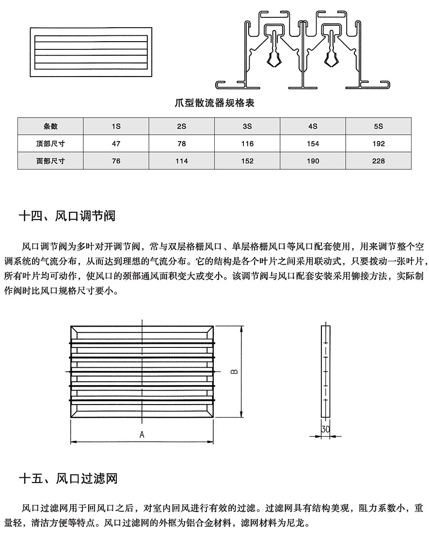自垂百葉風(fēng)口用于具有正壓的空調(diào)房間自動(dòng)排風(fēng)。通常情況下靠風(fēng)口的百葉自重而自然下垂,隔絕室隔絕室內(nèi)外的空氣交換,當(dāng)室內(nèi)氣壓大于室外氣壓,氣流將百葉吹開而向外排氣,反之室內(nèi)氣壓小于室外氣壓時(shí),氣流不能反向流入室內(nèi),該風(fēng)口具有單向止回作用。鋁合金表面經(jīng)陽極氧化處理,也可根據(jù)用戶要求進(jìn)行靜電噴塑。