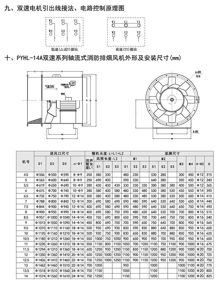 PYHL-14A系列風(fēng)機(jī)設(shè)計(jì)獨(dú)特:高溫電機(jī)全封閉內(nèi)置,配設(shè)專門的電機(jī)冷卻系統(tǒng),采用CAD軟件多目標(biāo)優(yōu)化設(shè)計(jì)的軸流和混流葉輪結(jié)構(gòu),通過多速驅(qū)動(dòng)形式,達(dá)到一機(jī)兩用(即常用送排通風(fēng)和消防試用時(shí)高溫排煙),配設(shè)電控箱后可遠(yuǎn)程自動(dòng)控制、具有耐高溫性能良好、效率高、體積小,安裝簡(jiǎn)便(水平、垂直、吊裝均可)等優(yōu)點(diǎn)。按GBJ500-45-95消防規(guī)范測(cè)試標(biāo)準(zhǔn)測(cè)定,能在400℃高溫條件下連續(xù)運(yùn)行100分鐘以上,介質(zhì)溫度100℃條件下,連續(xù)運(yùn)行20小時(shí)/次不損壞,已被全國(guó)各大城市消防部門認(rèn)可采用。